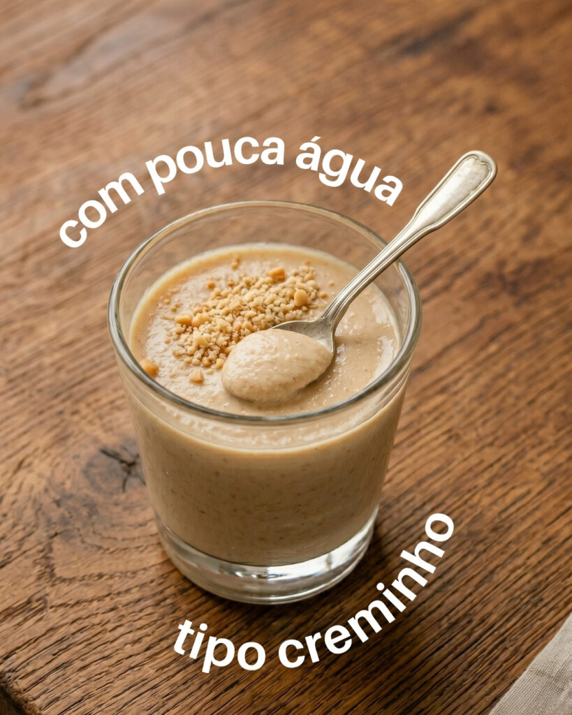 Adicionado bem pouca água, você muda completamente a experiencia de cosumo. Ele deixa de ser uma bebida e vira algo próximo de um creme: mais denso, mais lento, mais sensorial. Se colocar uns minutinho no freezer…fica um verdadeiro brigadeiro de colher – de paçoca!!!
